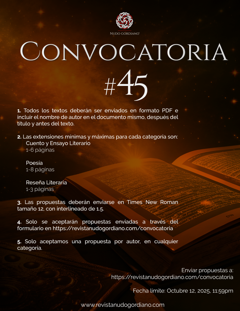 Al enviar tu propuesta aceptas recibir correos de Nudo Gordiano. Esto nos permite informarte si tu propuesta resulta seleccionada, enviarte el número cuando sea publicado y compartir textos y noticias contigo. Puedes escoger dejar de recibir correos nuestros en cualquier momento. Consulta cómo utilizamos tus datos en nuestra Política de Privacidad.